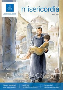 Die Zeichnung von Cécile Guinement auf der Titelseite der März-Ausgabe der misericordia zeigt Johannes von Gott (1495 – 1550), Ordensvater der Barmherzigen Brüder, als zupackenden und selbstlosen Heiligen der Nächstenliebe, der Kranke und Arme, Alte und Kinder von den Straßen Granadas holt und sie in seinem Hospital pflegt. Er war „in seiner Zeit ein Anwalt der kranken und behinderten Menschen“ und ist für uns noch heute „ein lebendiges Ausrufezeichen“, schreibt Prälat Bertram Meier, der am 21. März zum Bischof von Augsburg geweiht wird, über Johannes von Gott. Wir drucken einen Auszug aus einem Text ab, den der neue Bischof vor einigen Jahren für die misericordia verfasst hat. Das Hochfest des heiligen Johannes von Gott begeht die Kirche am 8. März. Das Heft bietet viele weitere spannende Beiträge, unter anderem über vegetarisches und veganes Essen, über die Rationierung der Pflege durch die Pflegepersonaluntergrenzen und über den Neubau am Krankenhaus St. Barbara Schwandorf. Und in unserer Serie „Klimaschutz jetzt!“ erklärt der Regensburger Wissenschaftler Professor Michael Sterner, warum Klimaschutz nicht „öko-diktatorisch“ ist, sondern „ur-konservativ“ – sein Text endet mit der Aufforderung: „Nutzen wir die Talente, die Gott uns gegeben hat, um seine Schöpfung zu erhalten!“
