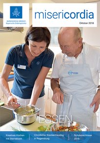Kochen mit Genuss, natürlichen Zutaten und ganz viel Leidenschaft: Das eint Hermann Pflaum und Monika Bischoff, die hier auf dem Titelfoto zu sehen sind. Der Sternekoch aus Franken und die Münchner Diplom-Ökotrophologin sind stets auf der Suche nach dem perfekten Geschmackserlebnis. Wir haben ihnen beim kreativen Kochen über die Schulter geschaut. Was andere noch so zum Thema ESSEN „auf der Pfanne haben“, kann man im Schwerpunkt unserer Oktober-Ausgabe der misericordia lesen. Aber auch Wissenswertes aus der Bayerischen Ordensprovinz gibt es: die aktuellen Zahlen der Absolventinnen und Absolventen unserer Schulen oder einen Bericht über den ersten Vorkurs zur Pflegehelferausbildung, den Schüler aus vielen Nationen in Straubing besuchten, darunter auch Geflüchtete.