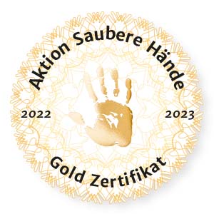 Wir sorgen systematisch, zum Beispiel mit Patientenidentifikationsarmbändern und Checklisten, für die Vermeidung von Verwechslungen. Ein Facharzt für Krankenhaushygiene, fünf Hygienefachpflegekräfte und über 50 hygienebeauftragte Ärzte und Pflegende kümmern sich um höchste Hygienestandards. Wir sind stolz, dass wir dafür als zweites Krankenhaus in Bayern von der Aktion "Saubere Hände" das Zertifikat Gold verliehen bekommen haben.