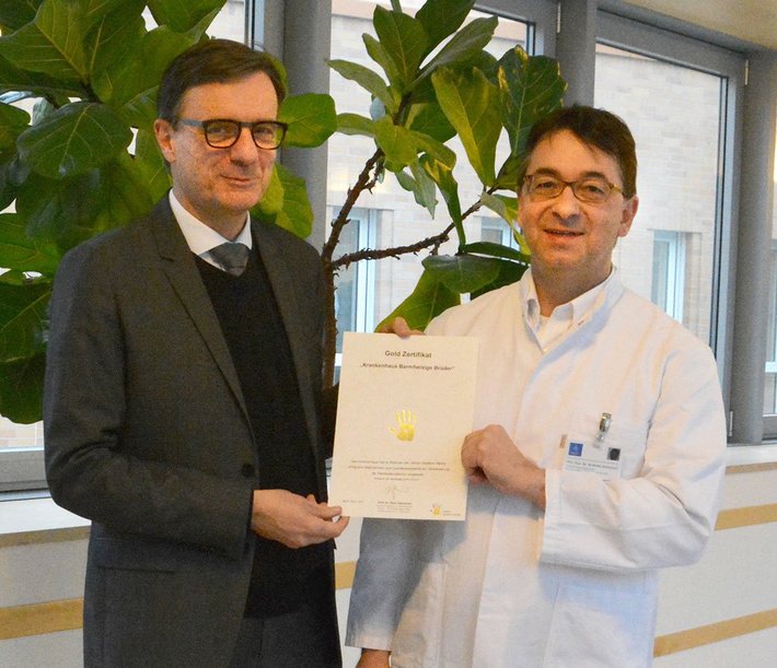 Zum vierten Mal in Folge erhält das Krankenhaus Barmherzige Brüder Regensburg die Gold-Auszeichnung bei der „Aktion Saubere Hände“.
